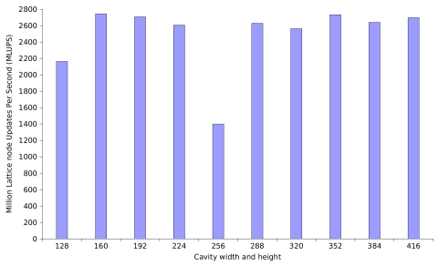 Performance using a Tyan B7015 server with eight Nvidia Tesla C1060 computing devices ranges up to 2744 million lattice node updates per second (MLUPS) for isothermal single precision solvers and to 1920 MLUPS for thermal single precision solvers. Recent studies (Lee et al., ISCA'10) have shown that optimised multi-threaded single precision CPU implementations of isothermal LBM solvers running on up-to-date hardware achieve at most 85 MLUPS, which is 32× less than our maximum performance.
