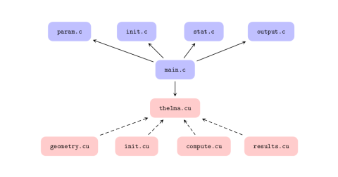 The TheLMA project aims at providing a comprehensive framework for implementing lattice Boltzmann method (LBM) flow solvers on graphics processing units (GPUs) and hybrid clusters. Development is based on Nvidia CUDA, which in our opinion is the most mature technology up to now for general purpose computations on GPUs. As outlined in Fig. 1, the framework consists in a set of modules designed such as to improve code reusability.